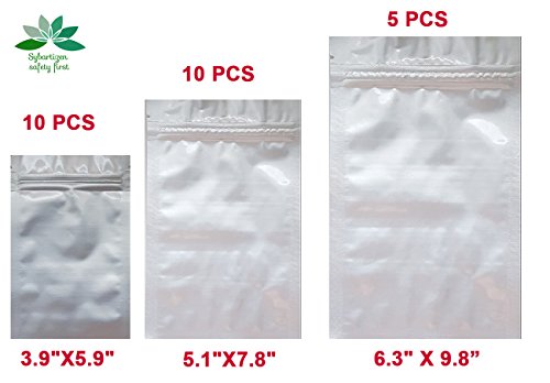 Sybartizen's Pack of 25 Assorted Size Collection - Flat Pure Aluminum Genuine Mylar Zipper Pouch Bags - Smell Odor Resistant Airtight Heat Sealable - Herb Seeds Powder Pharma - Safe Storage (25)