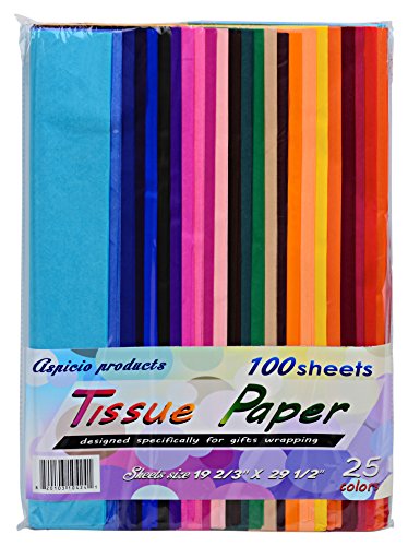 Tissue Paper-Craft Paper-Colored Paper Larger-19 2/3" X 29 1/2"-Heavier Thicker (21GSM)-More colors 25 vibrant colors-100 Sheets Paper Crafts Pack in Bulk-Gift Wrap -The best Paper Tissue Value Pack-Satisfaction guaranteed or your money back.