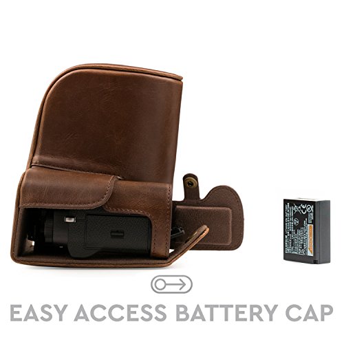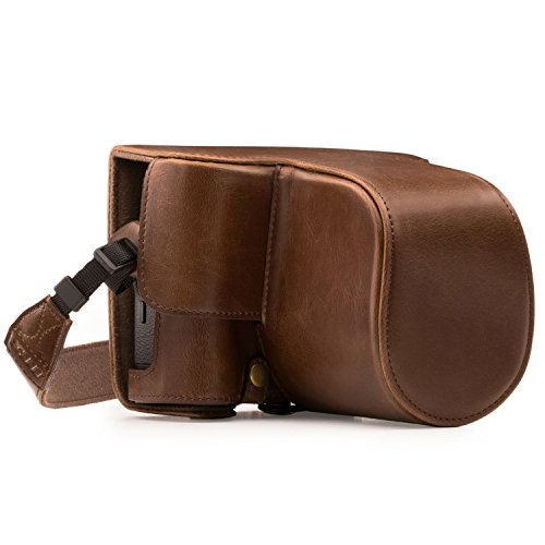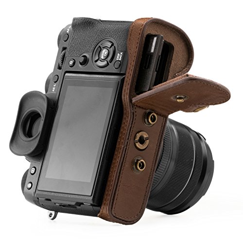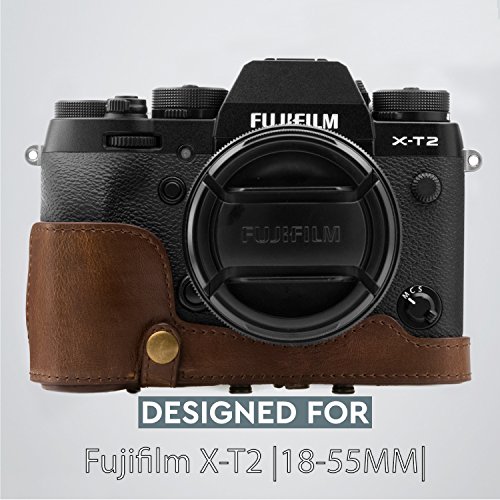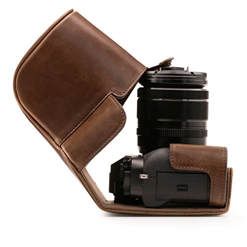 MegaGear Immer bereit Leder Kameratasche - Einfach zu Installieren, Stativ und peripheren Freundlich Zubehor - Kompatibel mit Fujifilm X-T2 mit 18-55MM Objektiv (Dunkelbraun)