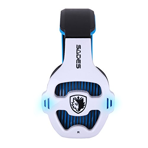 SADES 7.1 Surround Sound Pro USB PC Stereo Noise-Canceling Gaming Headset with High Sensitivity Mic Volume-Control Blue LED lighting, White (SA903)