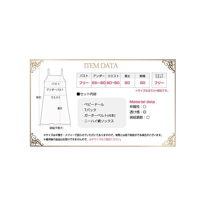 【세트 내용】베이비 돌,T백,가터벨트4개,니하이(knee-high)망 타이츠 4점 세트