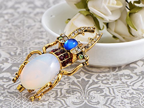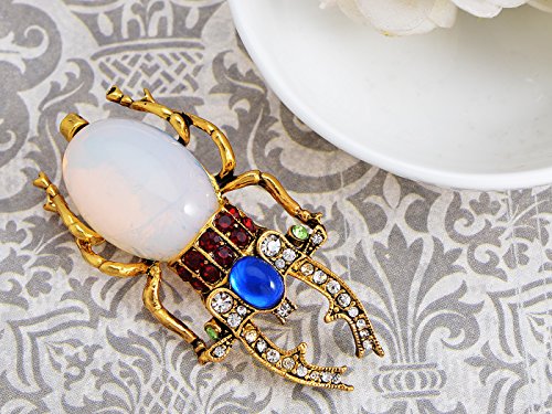 Inspired by the pincher bug and Ancient Egyptian times, this brooch was formed. The smooth white stone forms the body of the bug while clear crystal and burgundy colored rhinestones adorn the neck and the pincers.