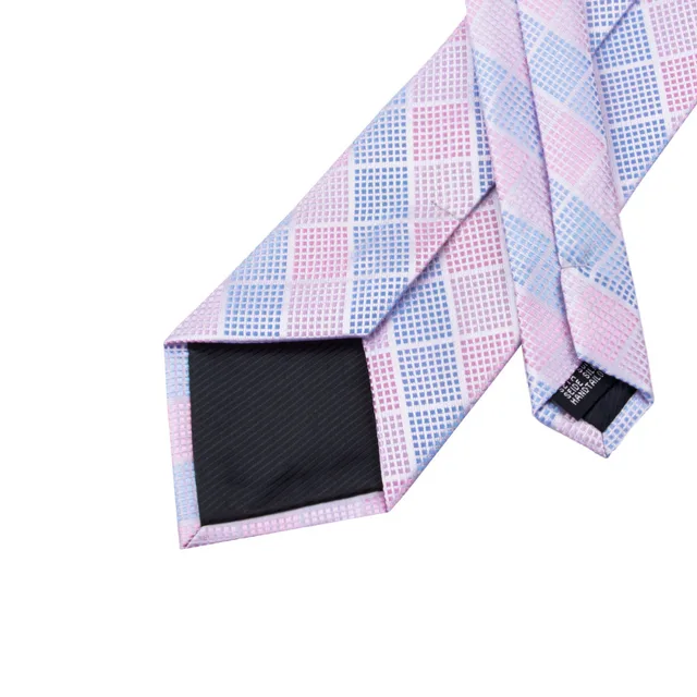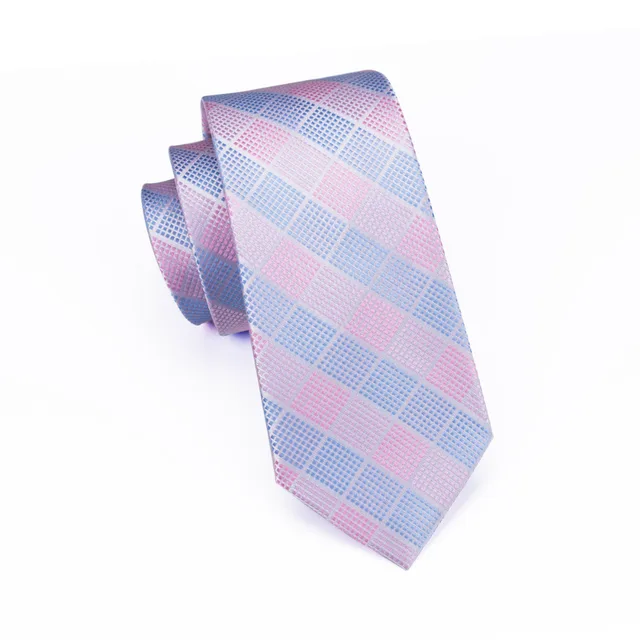 C-1198 패션 실크 자카드 넥타이 라이트 블루 핑크 격자 무늬 넥타이 손수건 커프스 세트 넥타이 비즈니스 웨딩 파티 여기를 더 선택