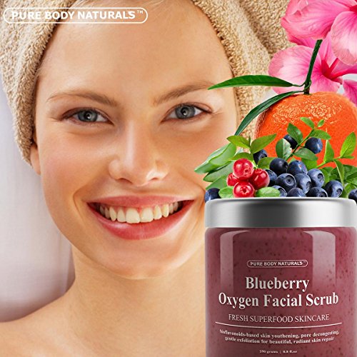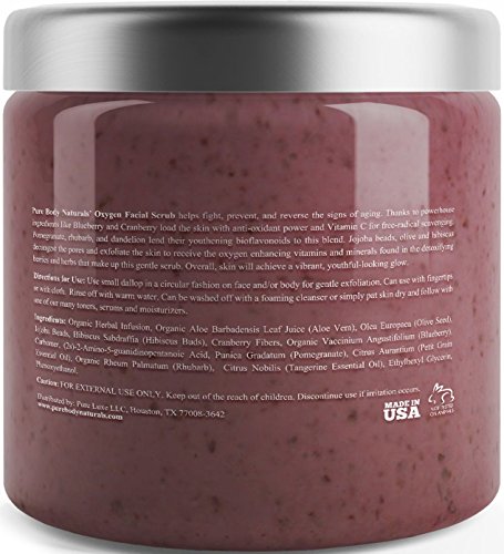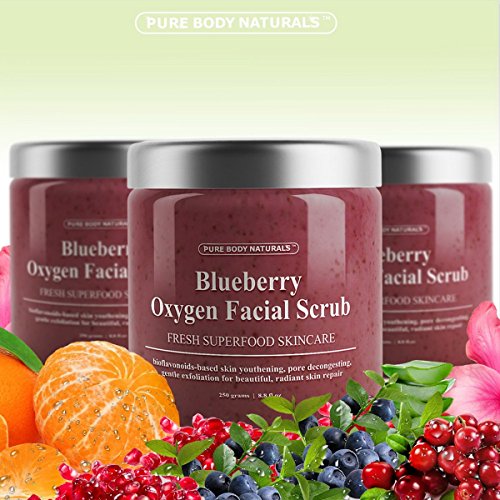 Studio : Pure Body Naturals Publisher : Pure Body Naturals Binding : Health and Beauty Product Description Say Goodbye to the Signs of Aging! It's hard to believe when you're in your twenties, but at some point, you'll look in the mirror and see fine lines around your eyes and mouth. But whether you're 22 or 92, you can help prevent, fight, and even reverse the signs of aging we all want to avoid. With the Blueberry Oxygen Facial Scrub from Pure Body Naturals, helping to achieve younger-looking skin is our mission with our incredible blend, which features a handful of antioxidant-rich ingredients like Blueberries and Cranberries. Together, they may help turn back the hands of time by fighting wrinkle-causing free radicals. To further promote a youthful glow, Jojoba Beads, Olive, and Hibiscus offer a gentle exfoliation, buffing away dead skins cells that can give you a dull complexion. They also give your pores a deep clean and hydrate for smooth skin. And to truly protect your skin from the signs of aging, this master blend features bioflavonoids like Pomegranate, Rhubarb, and Dandelion that defend against the effects of unavoidable damage brought on by stress and pollution. Why Choose our Oxygen Facial Scrub? ??????Rich in antioxidants that keep skin looking young. ??????Offers a mild exfoliation. ??????Protects skin from potential damage. ??????Helps keep skin soft, supple, and moisturized. ??????Amazing Expert blend including several natural and organic ingredients. Try Today Risk-Free with Our Satisfaction Guarantee! Supply is limited. Order today to ensure availability. Order your Facial Scrub Now and Reveal The New You! 0