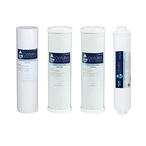 Olympia Water Systems 4-Pack Replacement Filter Set For Reverse Osmosis System - Stages 1-3 & 5, 10" Replacement Filters