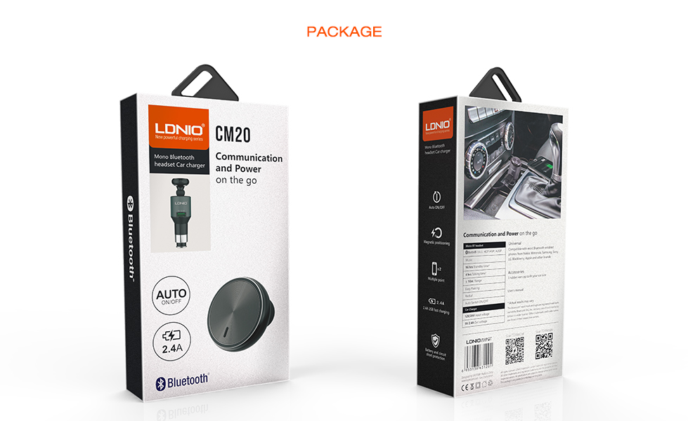 1 x LDNIO CM20 Car Charger with Mono Bluetooth Headset