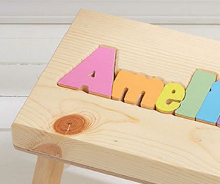 -. Brand : Damhorst Toys & Puzzles -. Color : Natural Wood in Pastel Colors -. Feature : PLEASE TYPE THE CHILD'S NAME USING THE "CUSTOMIZE NOW" BUTTON / Stool top measures 9" x 12" (Stands 9 inches off the ground) / 8 letter maximum (7 letters with two names Ex: Ava June) / Natural finish with letters in pastel colors (non-toxic water based) / Made from one solid piece of Ponderosa Pine crafted in our Missouri workshop -. Label : Damhorst Toys & Puzzles -. Manufacturer : Damhorst Toys & Puzzles -. Model : 102 -. MPN : 102 -. PackageQuantity : 1 -. PartNumber : 102 -. ProductGroup : Furniture -. ProductTypeName : HOME_FURNITURE_AND_DECOR -. Publisher : Damhorst Toys & Puzzles -. Size : Small -. Studio : Damhorst Toys & Puzzles -. Title : Personalized Wooden Child's Name Puzzle Stool Pastel Colors -. Warranty : Unfortunately there are no returns on personalized items