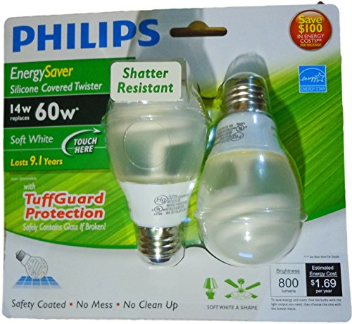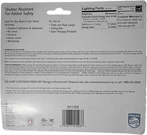 Philips 14W (60W Equivalent) CFL Shatter Resistant Light Bulb with 9.1 Year Life, Medium Base (4 Bulbs)