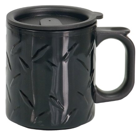 -. Title : 12 Oz Travel Mug with Handle - Black Diamond Plate Finish
