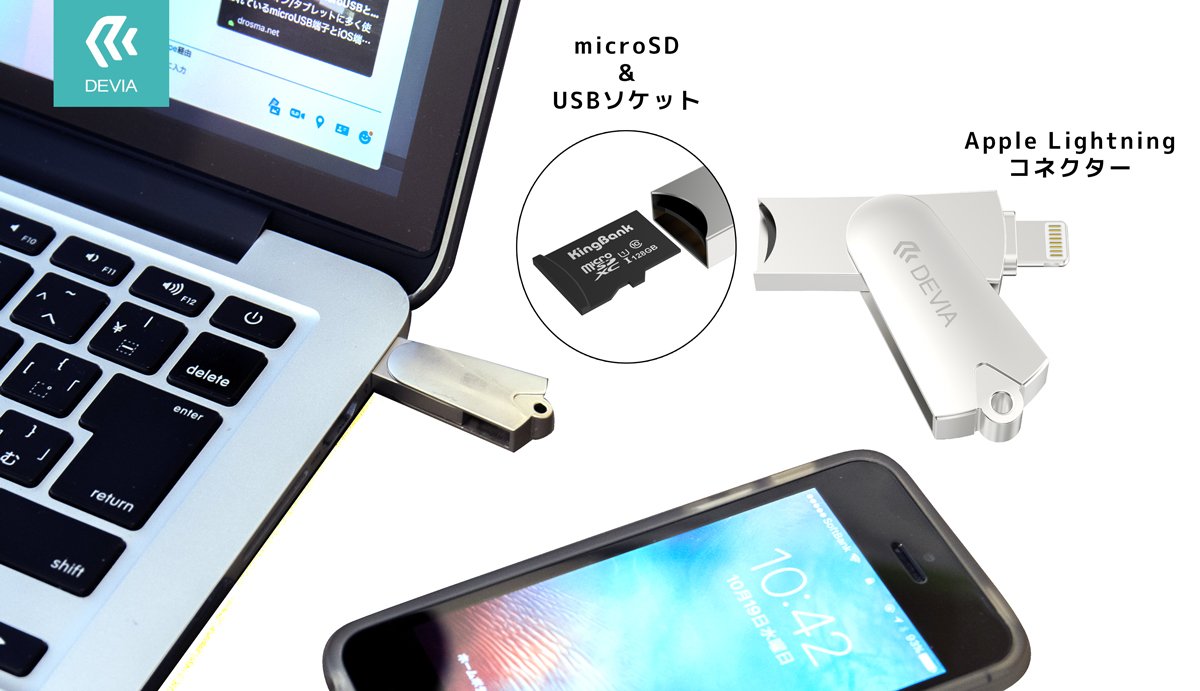 MFi certified Lightning SD card adapter that can easily transfer and copy (backup) images and movie files in microSD card and iPhone or iPad so you can solve storage shortage.