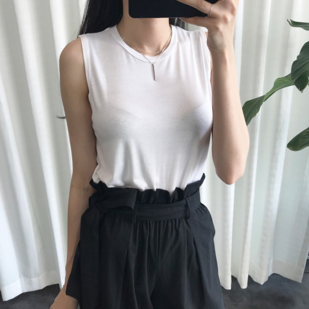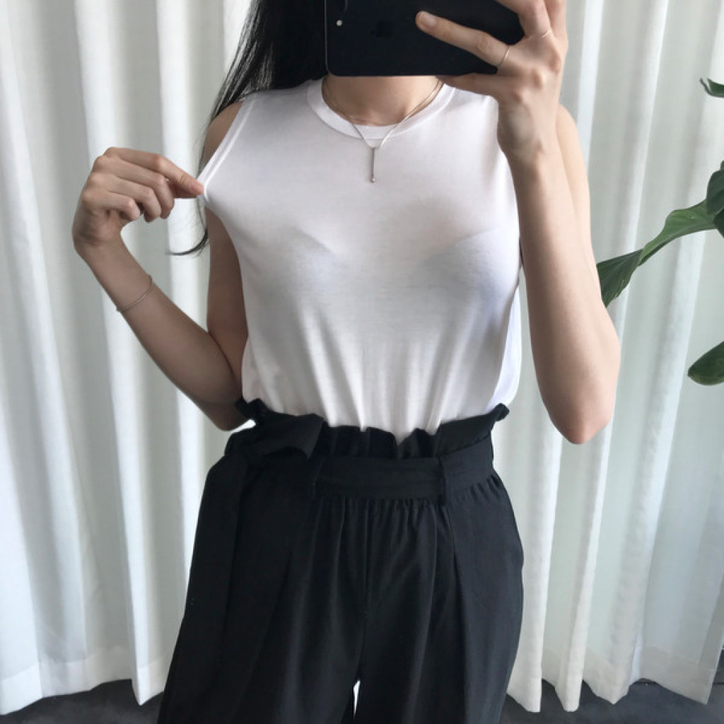 여성스러운 라인감을 가진 나시티셔츠 입니다