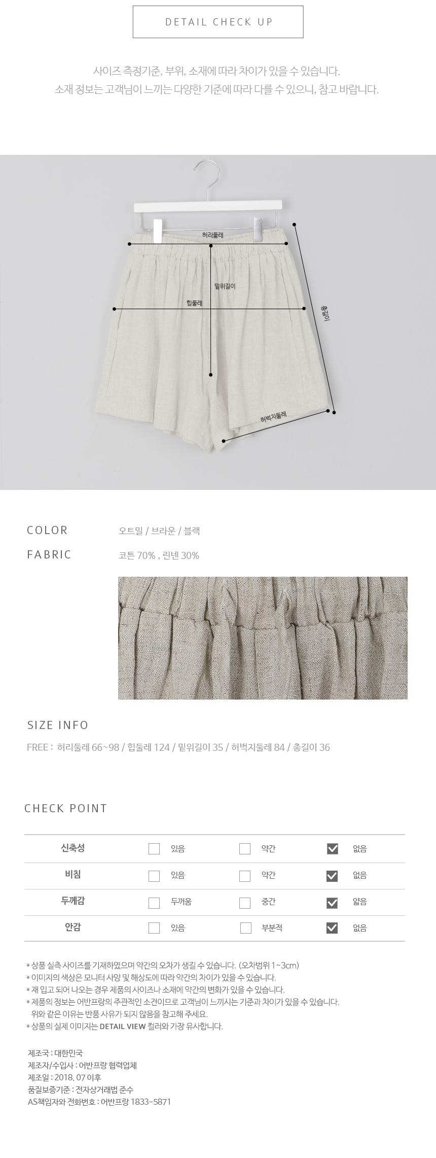 전체 허리 밴딩으로 편안하고 산뜻한 길이감과