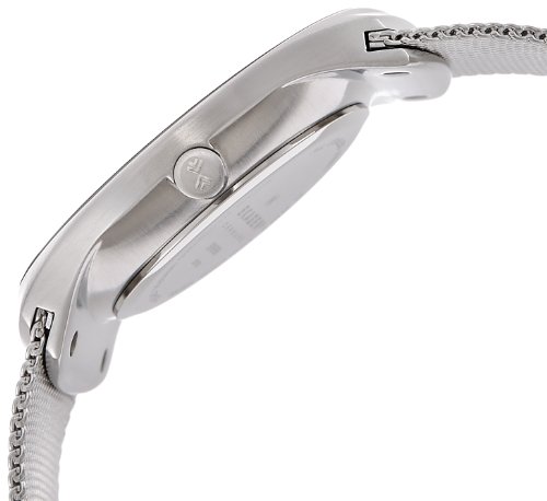 - Feature : Silver-tone watch with mesh band featuring blue dial with baton hour markers / Analog-quartz movement with analog display / Mineral crystal dial window / Features fold-over-push-button-clasp-with-safety closure / Water resistant to 165 feet (50 M): suitable for swimming and showering / Quartz movement / Case diameter: 39 mm / Signature steel silver tone mesh bracelet / Durable mineral crystal protects watch from scratches