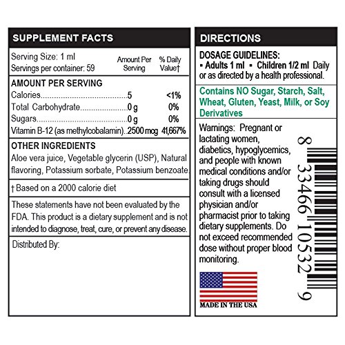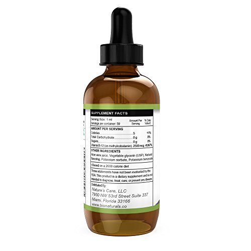 -. Title : Vitamin B12 2500mcg Liquid Drops with Aloe Vera Juice by Bio Naturals - All Natural Energy & Brain Booster - Potent Sublingual Formula Helps with Fatigue & Weakness, No Crash - 100% Vegan - 2 fl oz
