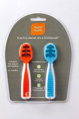 -. Feature : The revolutionary new first step to self-feeding. / Its innovative design makes it easier to use than a spoon because there's no right or wrong way to hold it. / Plus, the NumNum head (one for thinner first foods and the other for thicker first foods) grabs just enough for baby while leaving very little mess. / Over time, your baby will begin scooping the food, an indication he or she is ready for the spoon. NumNum, indeed!