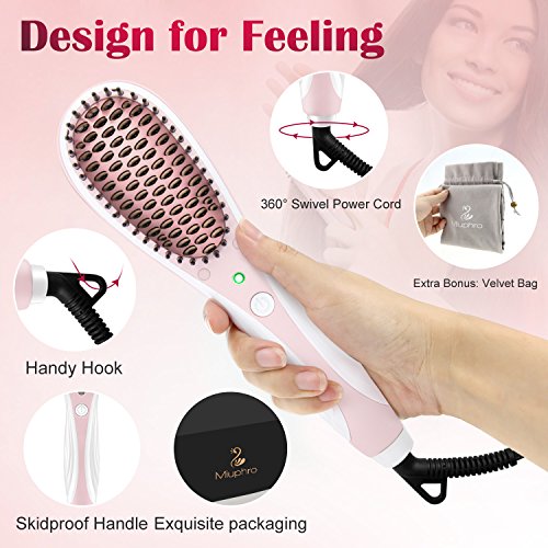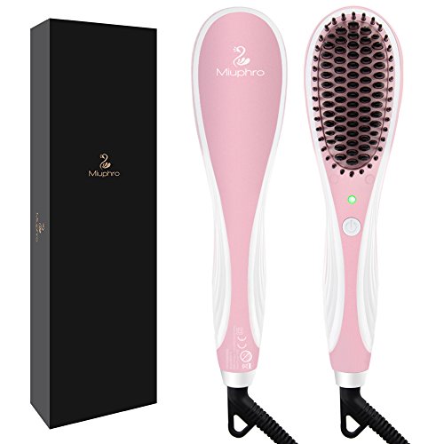 Miuphro Hair Straightener Brush, Advanced High Density Comb Teeth+Adjustable Temperatures+Auto-Shut Off Fast Heating Hair Straightening Brush Anti...
