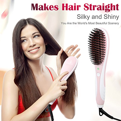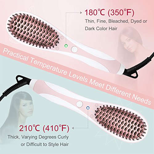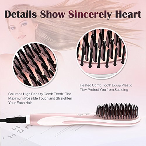 - 【 ADVANCED HIGH DENSITY COMB TEETH 】 Configures market-leading high density heating comb teeth, the maximum possible touch your each hair. The hair straightener brush will help to straighten your hair efficiently and with high quality, each hair is straightened quickly, Achieve beautiful straight salon quality hair that will last for the entire day, arranging slippery hair is the foundation with straight beautiful hair, no matter short or long, thick or thin