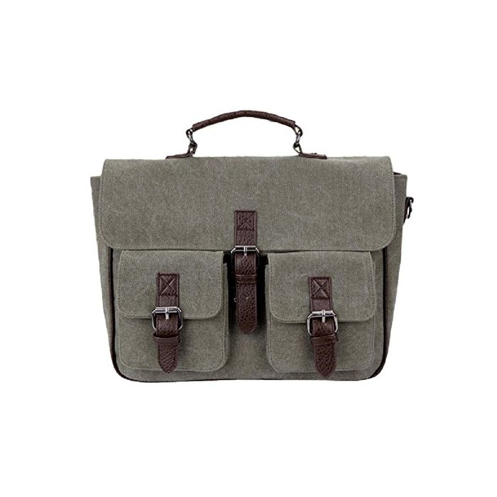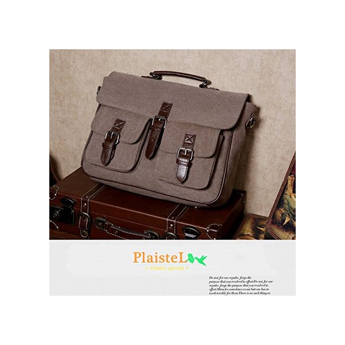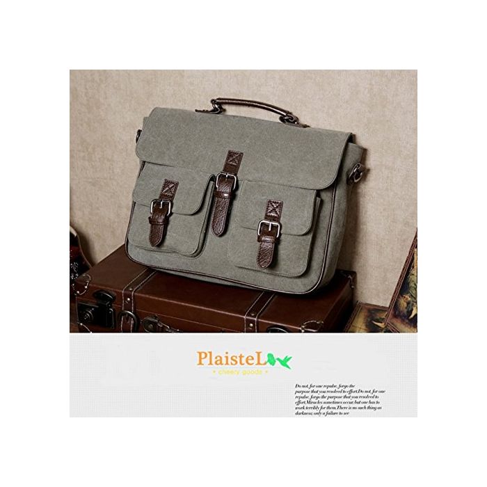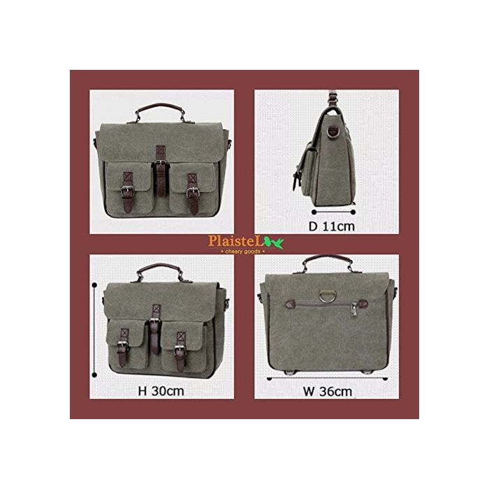(PlaisteL) 맨즈 캔버스 3WAY 핸드 배낭 숄더백 대용량 통근 비지니스 통학 여행 (카키 그린)