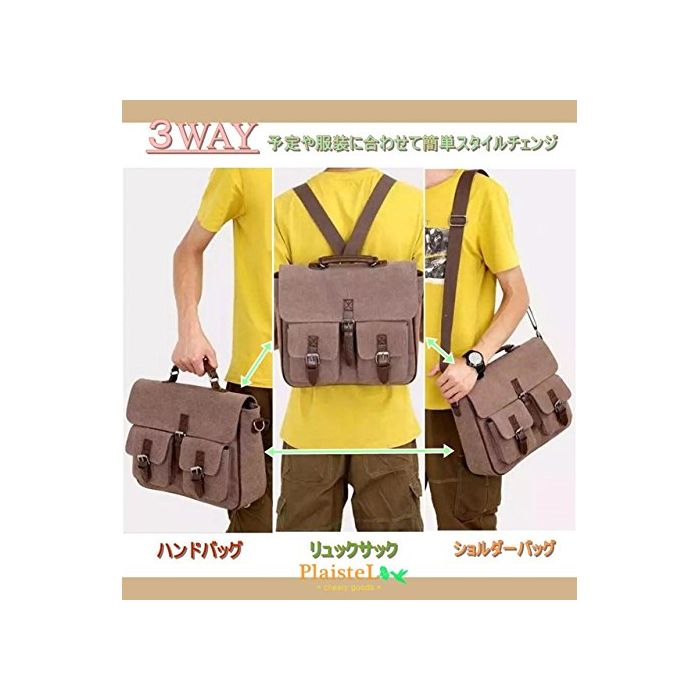 원본상품명:(PlaisteL) メンズ キャンバス 3WAY ハンド リュック ショルダ バッグ 大容量 通勤 ビジネス 通 旅行