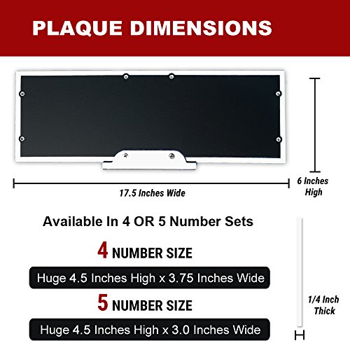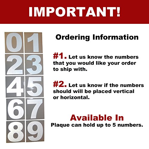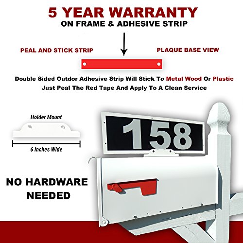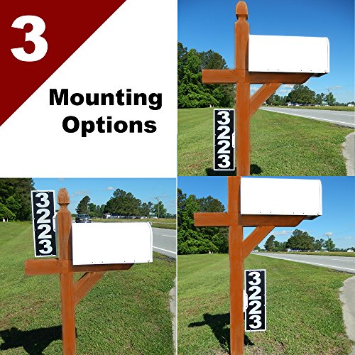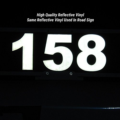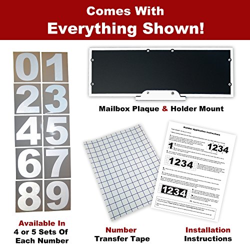 -. Feature : Large 4.5 Inch Reflective Numbers Mailbox Address Plaque Mailbox Topper. Your Mailbox Address Marker Will Be Seen By Everyone. / Made in the USA, Light Weight and Comes With Quality High Reflective Vinyl Numbers Same Used In Signs On Roads & Highways. Can Fit Up To 5 Numbers. / Multiple Mounting Options As Well As Self Stick Adhesive For Top Of Mailbox Mount. Rust Proof Stainless Steal Hardware Included. / Emergency services, Home Deliveries & Friends Can Find You With Ease. Address Stands Out 10 Times Further Then Traditional Mailbox Numbers. / 5 YEAR WARRANTY, Constructed From Cellular PVC Which Makes It Resistant To The Sun And Weather!