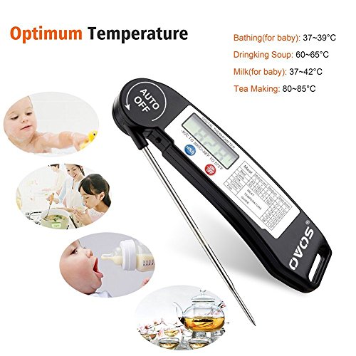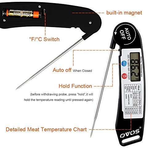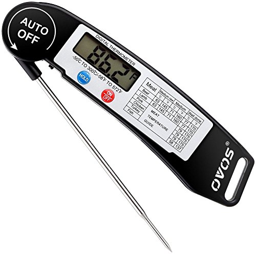 OVOS Ultra Fast Cooking Thermometer - Digital Thermometer with Instant Read - Long Foldable Probe - For all Liquid or Solid Foods - Meat thermometer for BBQ, Grill and Oven (Black)