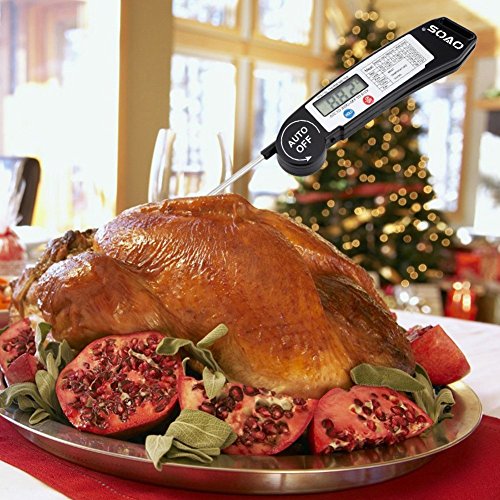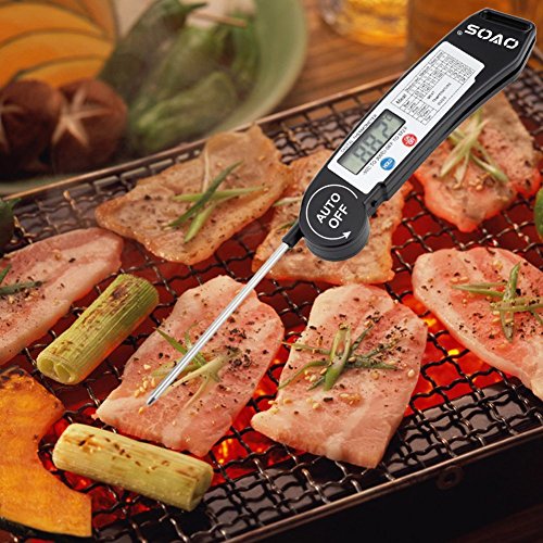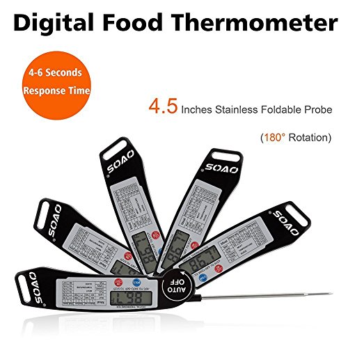 INSTANT READ THERMOMETER: Just need 4-6 seconds digital readout, the temperature is displayed on the built-in LCD, improve work efficiency, the kitchen gadgets is very suitable busy chefs and hectic kitchens.