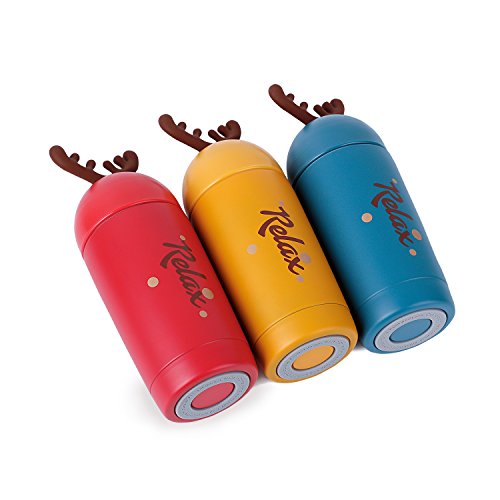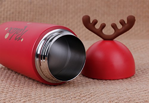 Homespon Christmas Elk Thermos Cute Vacuum Insulated Mug Tumbler Stainless Steel 10-Ounce Water Bottle,gold