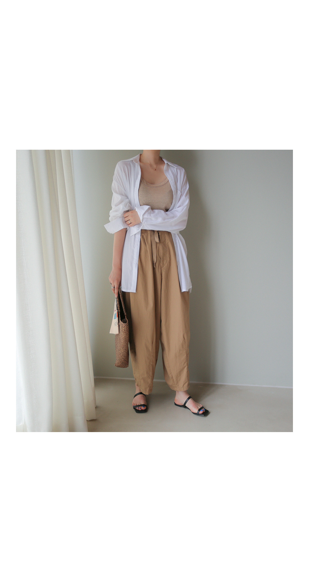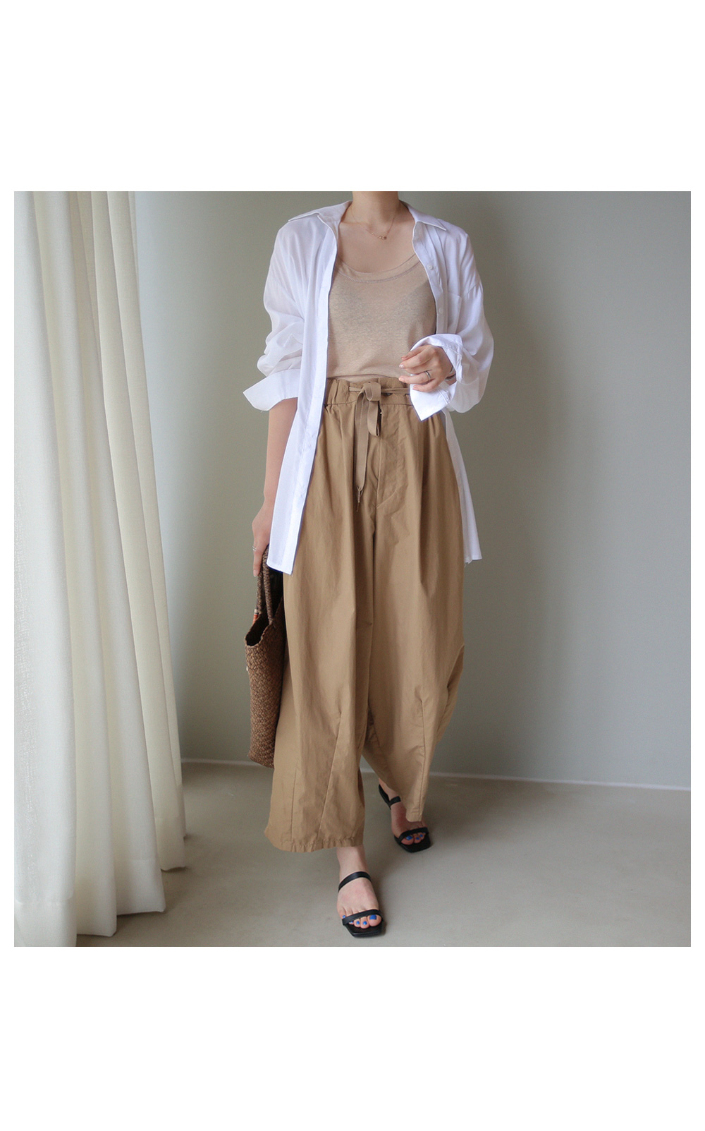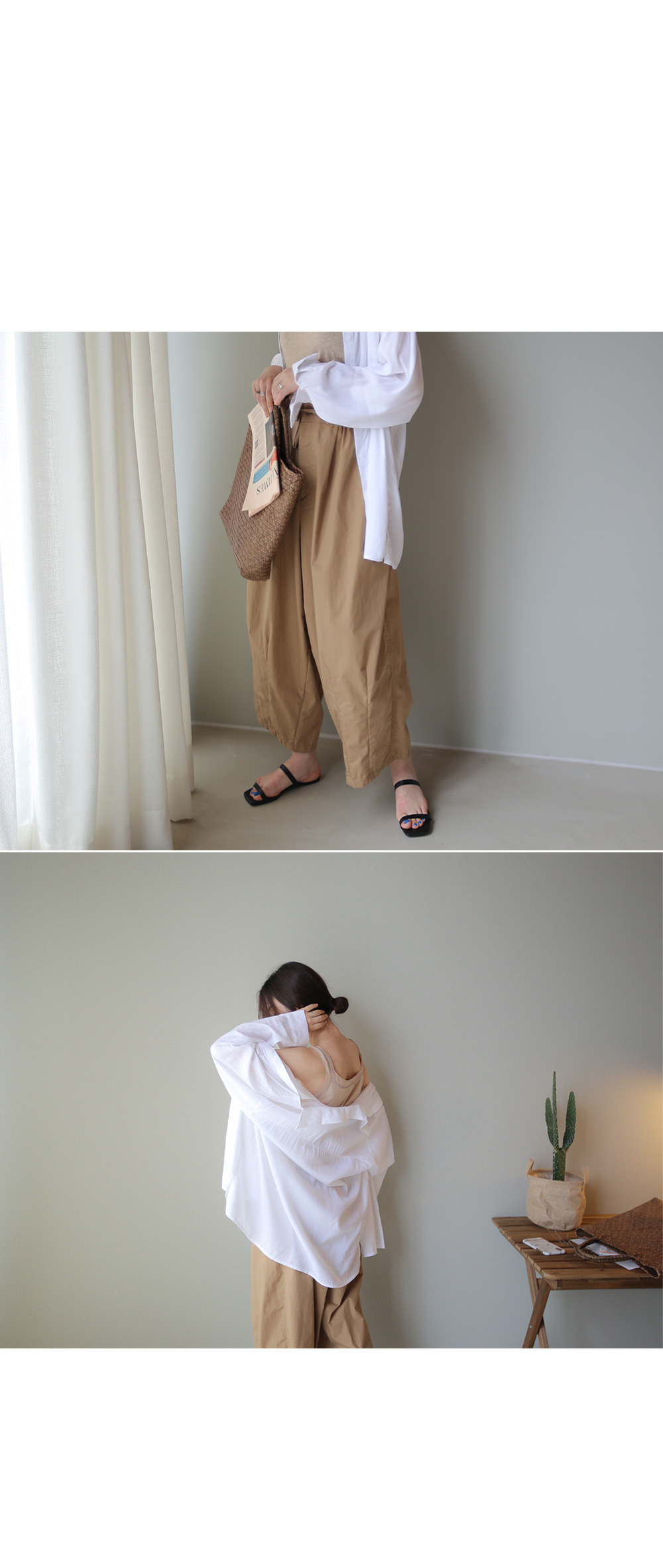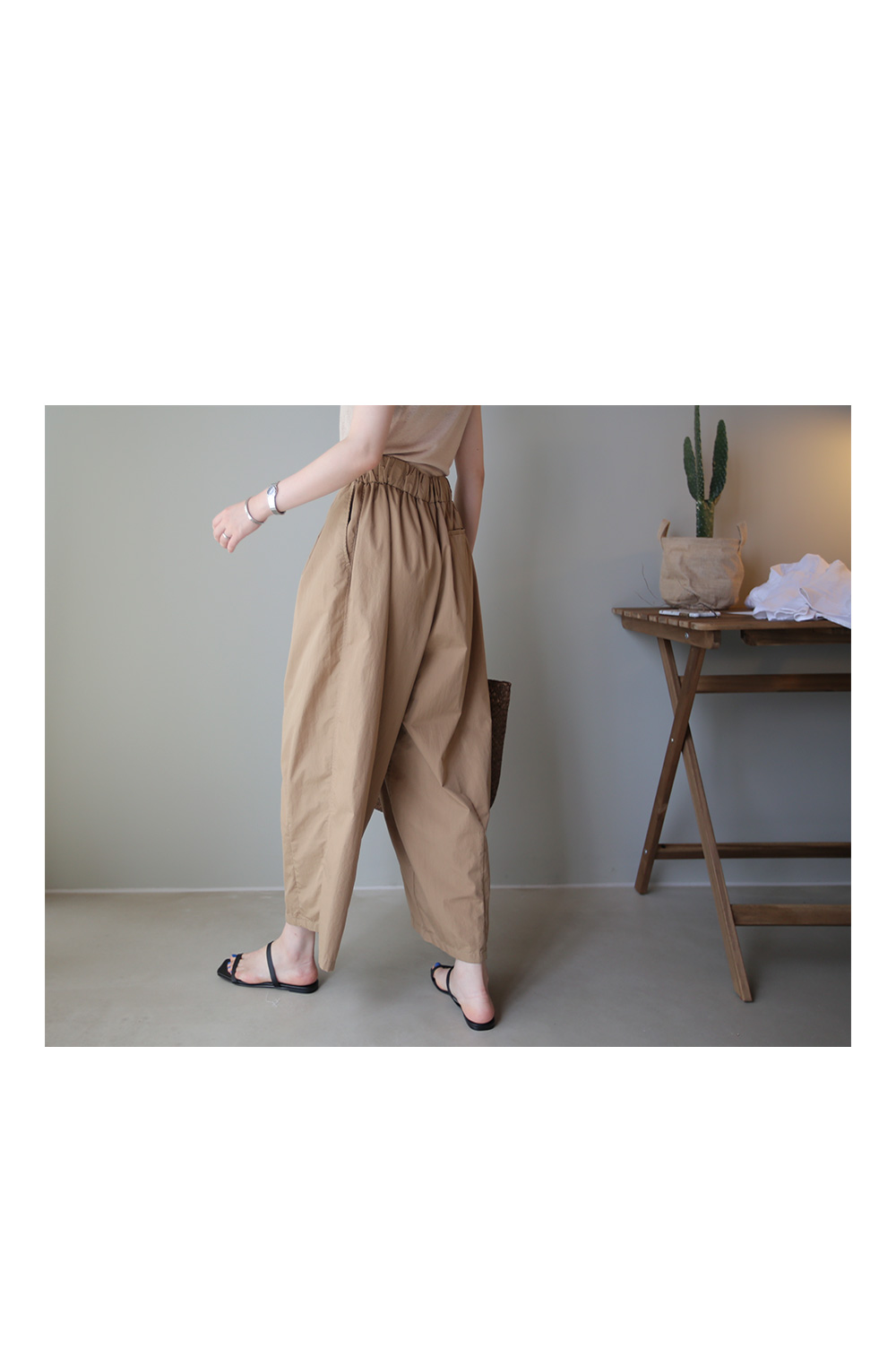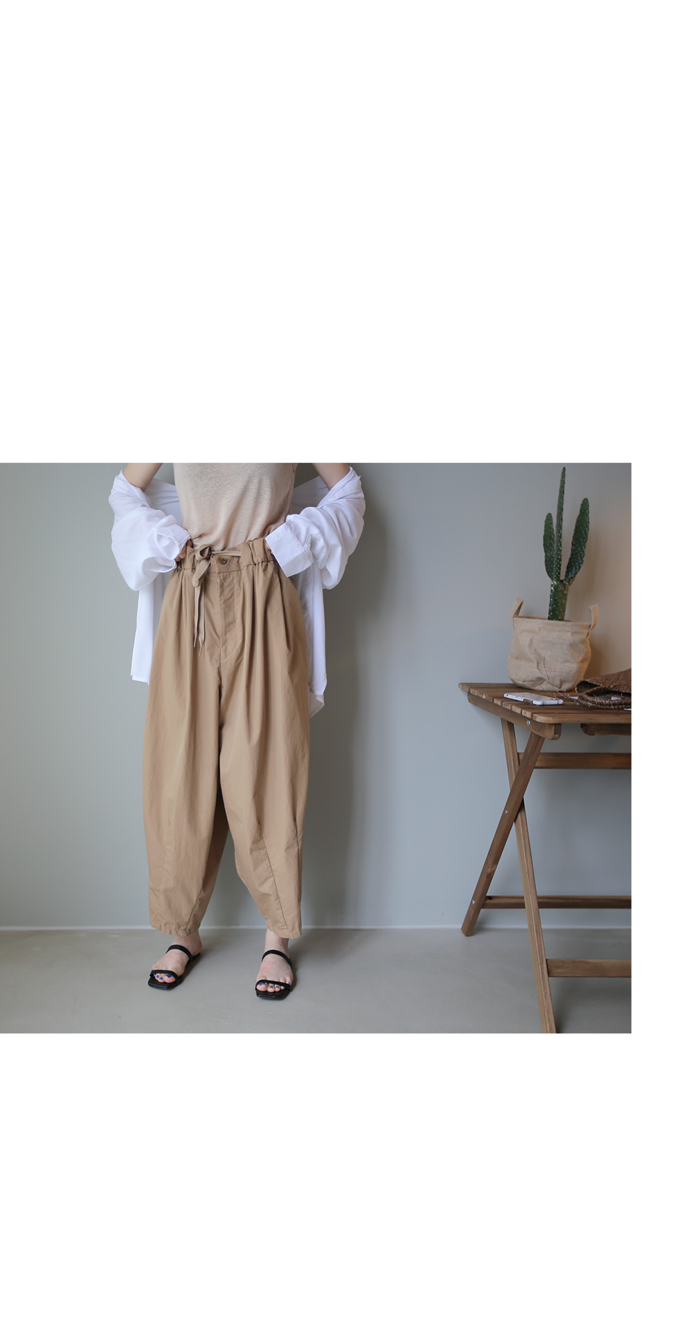 팬츠의 밑단 부분은 핀턱주름을 잡아