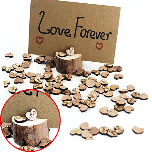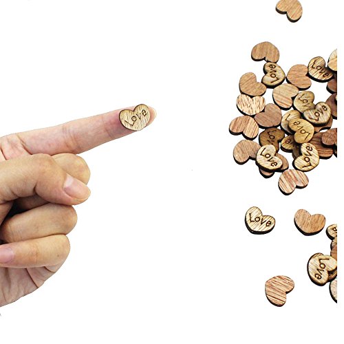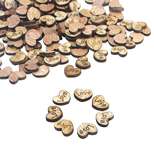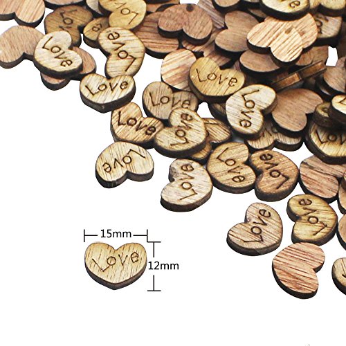 CEWOR 300pcs Rustic Wooden Pattern Love Hearts Shaped Wood Slices Crafts for Wedding Party Ornaments