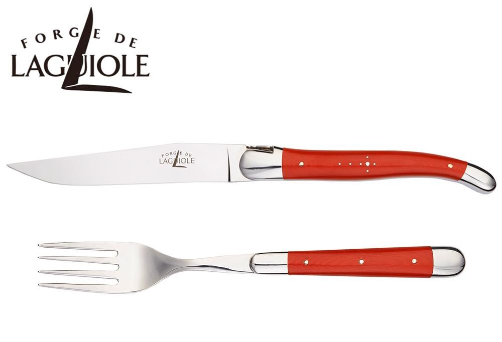 | テーブルナイフの刃はすべて鍛造されており、切れ味良くステーキ肉などを切ることができます。また、中ほどにふくらみをもたせたフォルムのハンドルは大変握り易く、適度な重量感が手の平にフィット。柄の部分は着色された布をメラミン樹脂につけ込んで圧縮した「コンプレストファブリック」を使用。耐久性にすぐれ、摩耗や変色をおこしにくくなっています。従来のライヨールにはない斬新でカラフルなデザインをお楽しみ下さい♪ |
