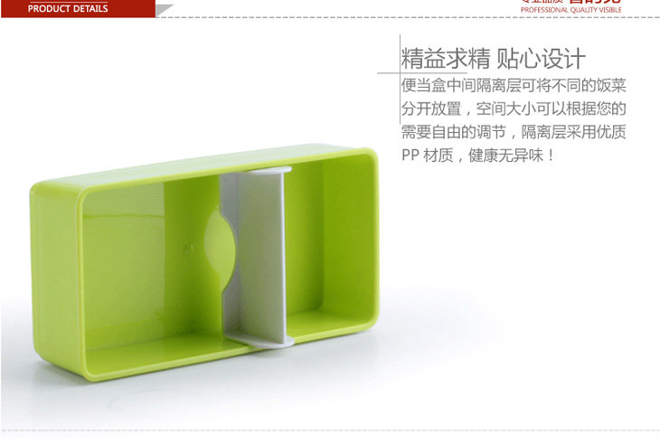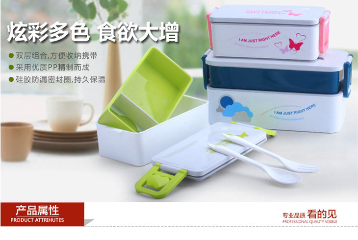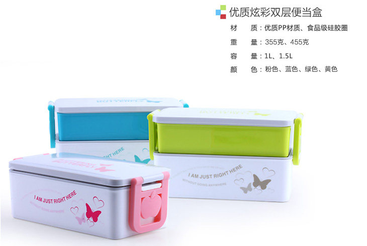 Product DescriptionTony co 1.5L double portable boxes, dazzling multicolor lunch box, make your life into a foreign style, simple style, lovely colors, vivid pattern matching warm, lunch boxes intermediate isolation layer can be placed separately in different meals, space size according to your needs free of regulation, the isolation layer made of high quality PP material, no smell healthy, convenient cover snaps on both sides of the apple, remove, cover thickened ear design, easy to break, sealing, and can be repeatedly folded open, lunch box built of high quality PP material spork, clean aesthetic, ergonomic, convenient storage. Net imports of silicone ring, excellent heat resistance, can be put in the microwave, but also Refrigerate.