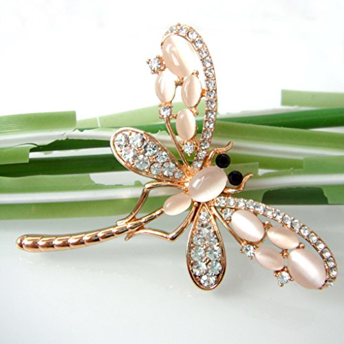 -. Title : Navachi 18k Gold Plated White Created-Opal Crystal Dragonfly Az7906b Brooch Pins