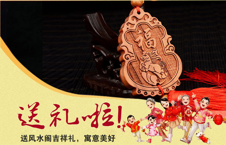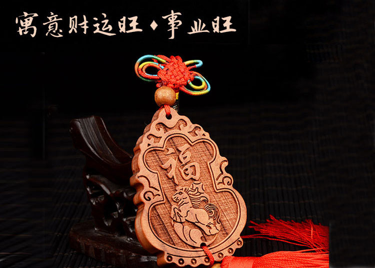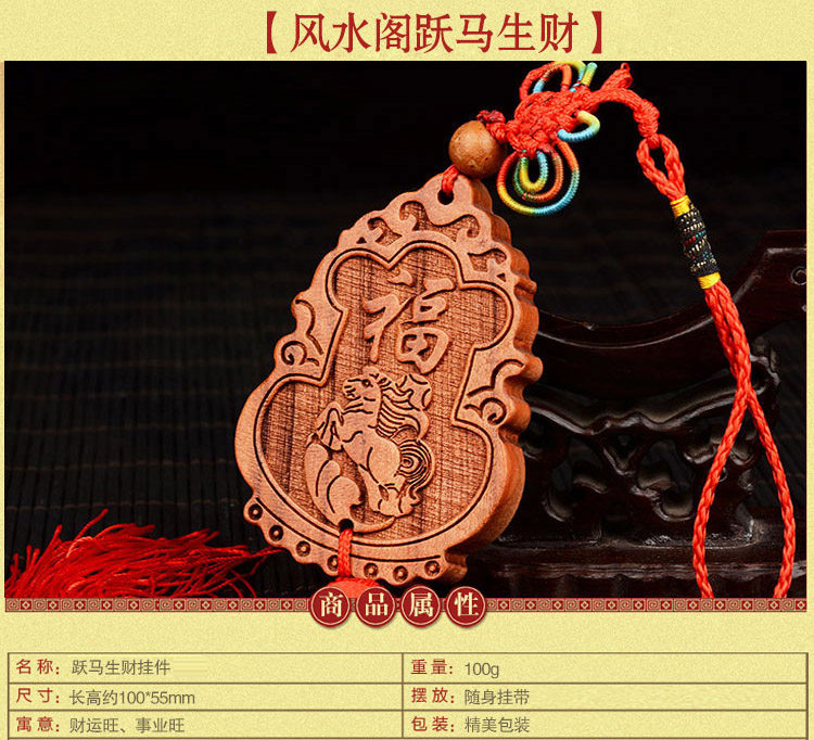 天然桃木跃马生财车挂 祈福招财 车挂挂件 箱包装饰饰品