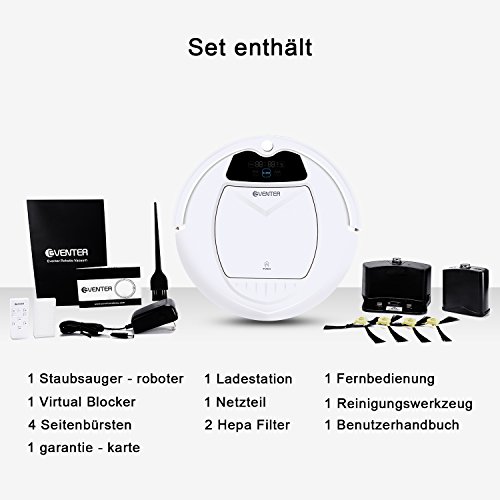 Eventer Staubsauger roboter Dich Frei, Auto Geladen Und Planen, Mit Machtigen Stromung, Hepa - Filter, Cliff Sensoren, Extra - BURste FUR KUChe, Harten Boden Und DUNnen Teppich, Pe