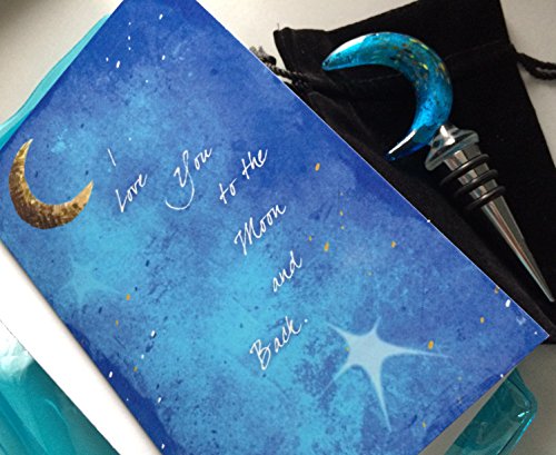 -. Feature : I LOVE YOU TO THE MOON AND BACK CARD - ~5x7 inches, 110# Premium glossy paper. Printed and made in USA. Comes with a second smaller 3.75x3.75 inch card with the same words. / GREETING CARD MESSAGE - "I love you to the moon and back. And my heart hugs you wider than the stars can shine." Long after the gift is received, the loving sentiment remains. / BLUE MOON WINE BOTTLE STOPPER - Beautiful Handcrafted Lampwork Glass with gold flecks. 4.75 high x1.75 wide (110x15mm), packed in a velvet bag lined with satin. / GIFTS AND USES -This exquisite sculpted blue moon wine stopper is a perfect way to tell someone that you love them. A wonder gift for him or her, son, daughter, mom, dad for birthday, Valentine's Day, anniversary, birthday, Christmas, or any occasion. / GUARANTEE - This product is glass so there is a chance it can break in shipping and handling. To date this has not happened but if it does, please contact Smiling Wisdom so we can resolve your issue. SIMILAR ITEM: ASIN: B01LW85VUP Shine Like the Moon Wine Bottle Stopper