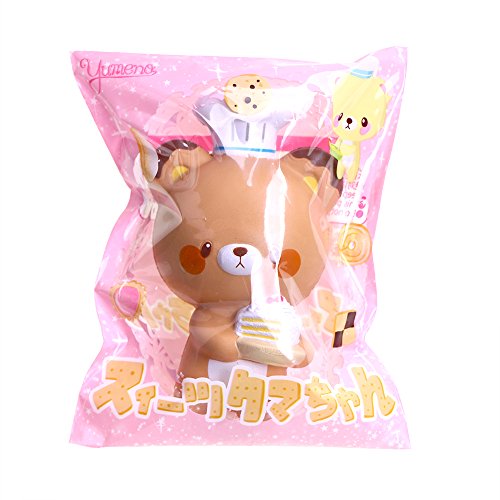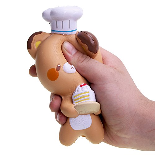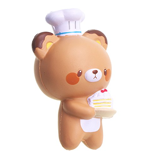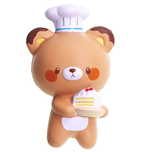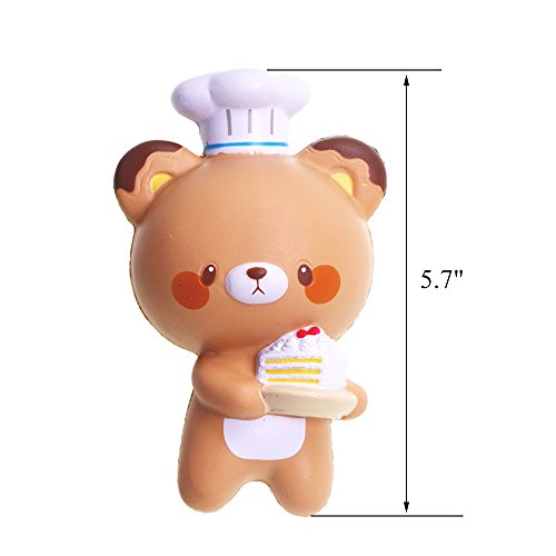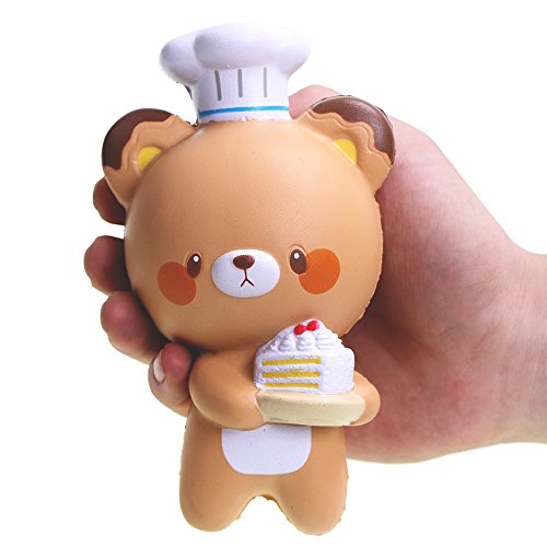-. Feature : SLOW RISING :soft and squishy ; fun to squeeze it, a good feeling to squish / SCENTED SQUISHY : item with a sweet smell, not bad chemical smell,cheap copies will have toxic,please notice. / MULTI-FUNCION : can be stress toy; decorations ; squishy collections ; DIY products, gift ideas / MATERIAL: PU Foam environmental protection materials, non-toxic.Do not tear it. It is easy to crack. But if you do not tear it, it will accompany you for a long time. / HANDLE SIZE:handle size squishy toys, good to squeeze.5.7'',cute chef bear