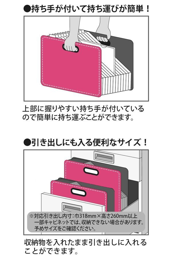 | 持ち運びに便利な自立するドキュメントファイルです。 |