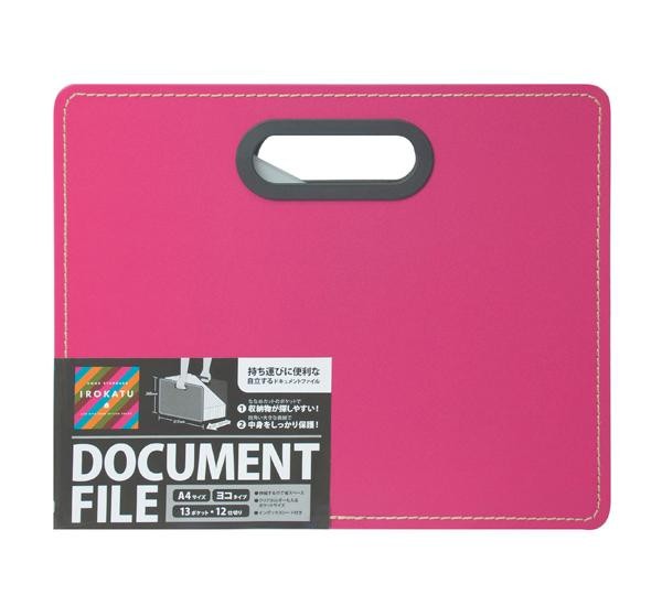 表紙に軽くて丈夫な発泡PPを使用した自立するドキュメントファイルです。ななめカットのポケットで収納物が探しやすくなっています!! |