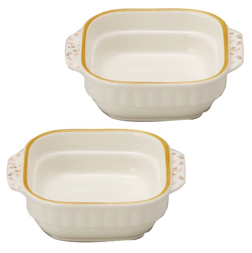원본상품명: 萬古? 小花 スタッキング 正角グラタン皿 オレンジライン (小) 2個セット 14084-2