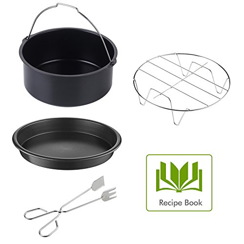 NewBee Universal 4 Piece Air Fryer Accessory Set for Gowise Phillips Cozyna or More Brands, Fit all 3.4QT - 5.3QT - 5.8QT + Recipe Book Maximize Your Air Fryer's Abilities with the Accessory Kit!