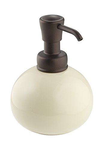 mDesign Ceramic Round Countertop Soap Dispenser Pump, for Kitchen or Bathroom - Vanilla/Bronze