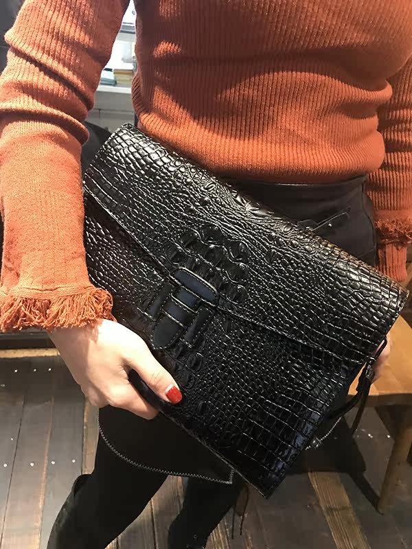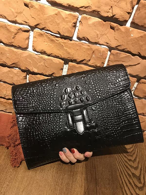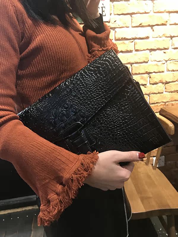 手拿包女新款鳄鱼纹女包大容量手抓包个性信封包单肩斜挎包