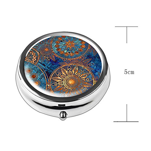 Studio : lizimandu Publisher : lizimandu Binding : Health and Beauty Product Description Pocket, purse or travel pill box is perfect for daily use.each of the 3 compartments can comfortably carry.Slim profile is deep enough for pills without being bulky.The pill box is not air or water tight, but does close completely.While the outside is metal for durability, the inside compartment is plastic for pill storage.Pill box case can accommodate large or small daily pills depending on your needs. 0