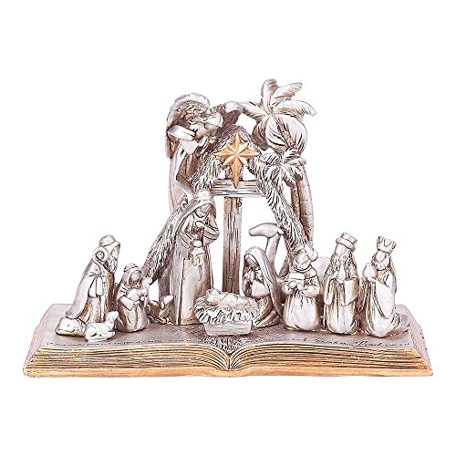 Luke 2:11 Nativity Silver Metallic Tone 6 x 4 Resin Stone Christmas Tabletop Figurine