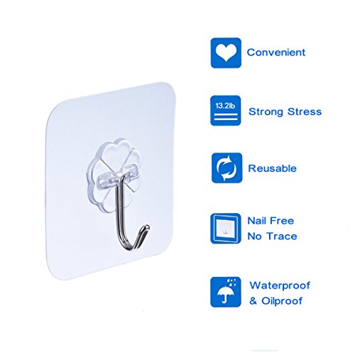 - Transparent Wall Hooks: Unique transparent design makes it almost invisible and without surface damage which is quite suitable for nice home decoration