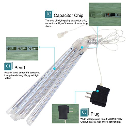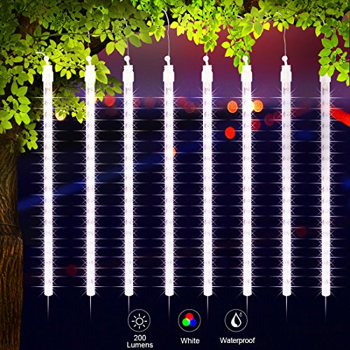 Icicle Lights LETOUR LED Meteor Lights Cozy White Holiday Light 11.8 Inch 8 Tubes 144LEDs, Outdoor LED String Lights Waterproof (Cozy White)