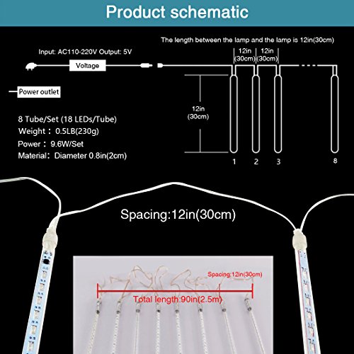 - PRODUCT PARAMETERS - Input:AC110-220V Output:5V, Power:9.6W/Set ,Weight:0.5LB(230g),Power:9.6W/Set,Tube Diameter : 0.8in (2cm), The maximum connecting distance between the tubes is 12in(30cm).