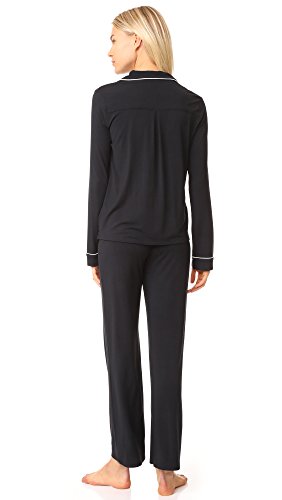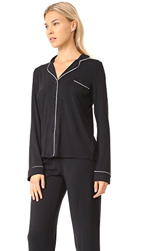 -. Feature : Top has long relaxed sleeves to keep you warm, an open notch collar with contrast pipe edge trimming, left chest pocket, and full front button closure / Pant flaunts a mid-rise and straight leg, topped with a drawstring waist for an adjustable fit / An eye mask to match is the only thing better than these incredibly soft pajamas / Available in three colors / Set includes long sleeve top, pant, and eye mask
