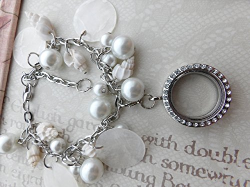-. Title : 0.0 Handmade Pearl Dangle Sea Shell Floating Living Memory Locket Bracelet Silver Crystal Diamonte Detachable Memory Locket Handcrafted Pearl Bauble Shell Disc Nautical Style Personalised Beaded