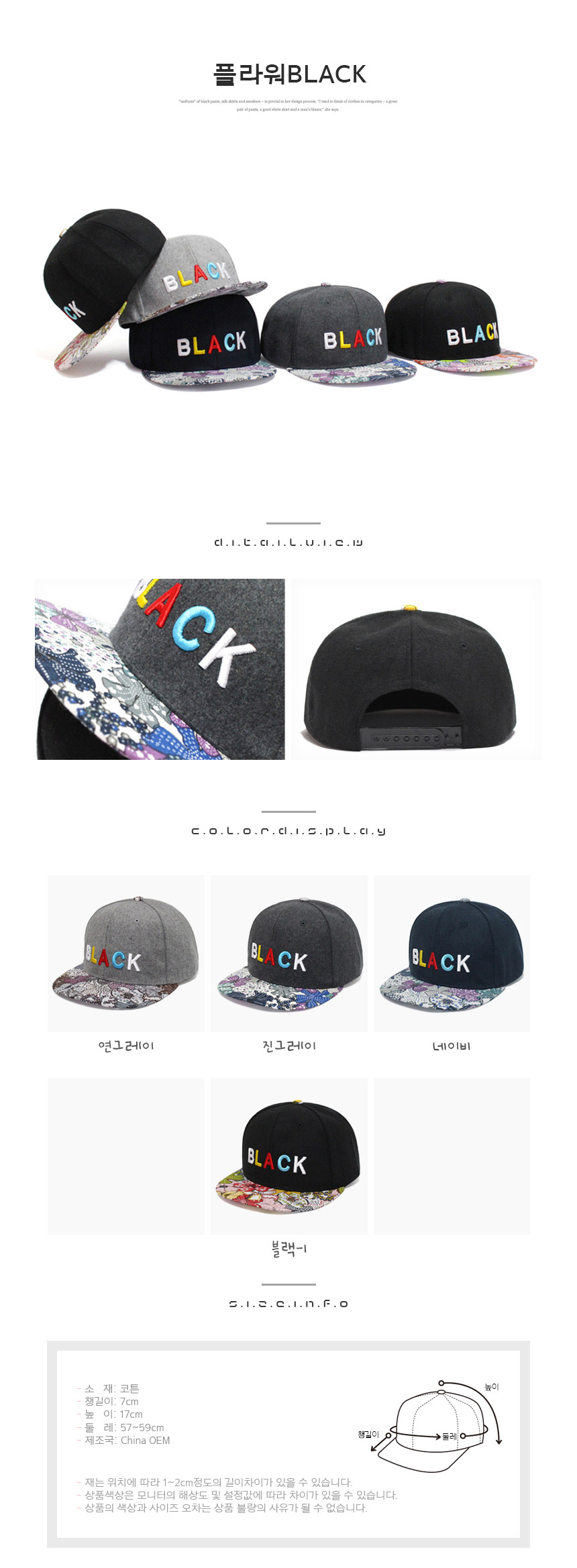 Collective Snapback Baseball Hat Unisex adult adult male and female flower BLACK